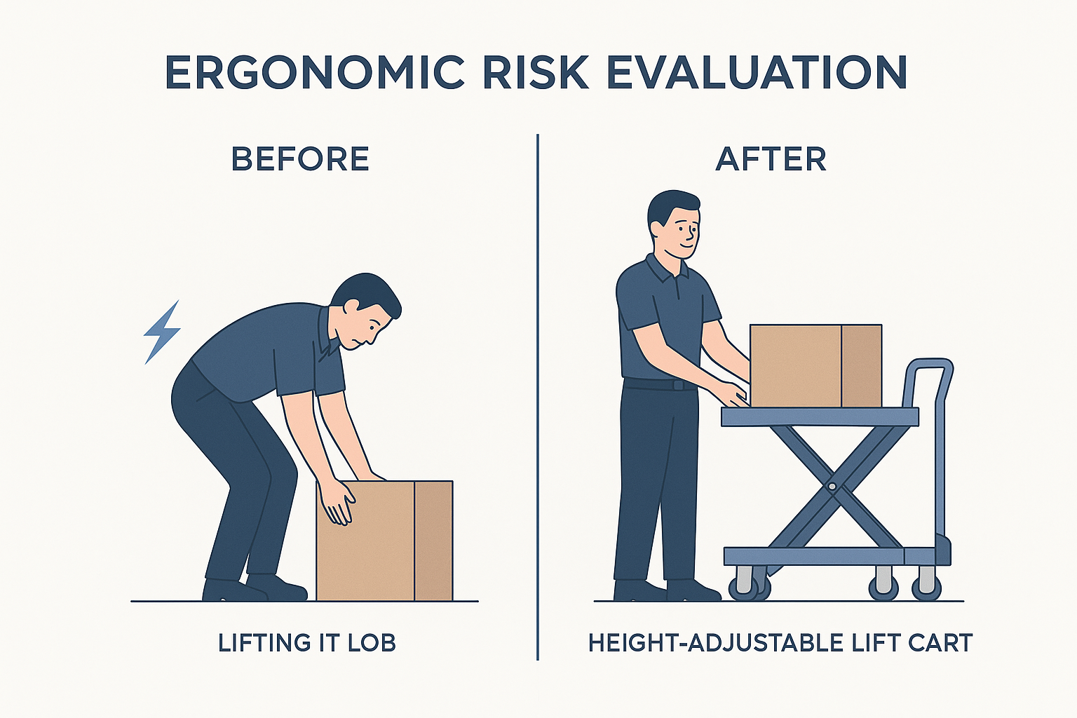 Ergonomics is the science of fitting the job to the worker, and it plays a vital role in preventing work-related musculoskeletal disorders (MSDs) such as back injuries, carpal tunnel syndrome, and neck/shoulder pain. Tasks that involve heavy lifting, repetitive motions, awkward postures, or excessive force can strain workers’ muscles and joints over time. The risk of injury depends on factors like how the task is performed, how often and how long it’s done, and the physical effort requiredosha.gov. Poor ergonomics not only lead to injuries but also fatigue and human errors, affecting productivity. The good news is that ergonomic improvements can greatly reduce these risks. Adjusting the workstation layout, providing mechanical aids (for lifting or tool support), rotating tasks, and training workers in safe techniques are typical interventions. According to OSHA, implementing ergonomics – fitting the job to the person – helps lessen muscle fatigue, increases productivity, and reduces both the number and severity of work-related MSDsosha.gov. In fact, work-related musculoskeletal disorders are among the most frequently reported causes of lost or restricted work timeosha.gov. This means companies have a lot to gain by addressing ergonomic risks: fewer injuries and absences, lower medical and compensation costs, and a more comfortable, efficient workforce.